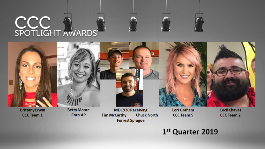 The Customer Care Center (CCC) has announced their Spotlight Awards for the 1st Quarter of 2019.