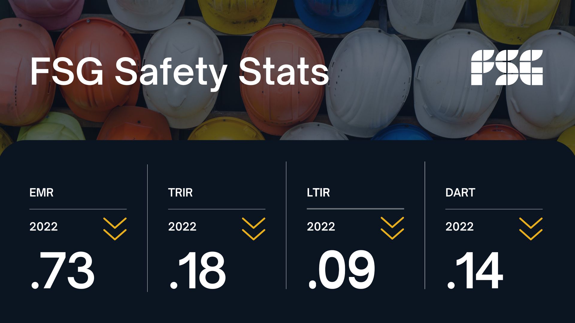 Some of the most commonly used safety ratings include EMR, TRIR, LTIR, and DART. Achieving a low safety rating is a significant accomplishment for any company, especially those of us in the construction industry. Our ratings prove that FSG prioritizes safety, has implemented effective safety management systems to prevent workplace injuries, and that our employees are dedicated to safety.